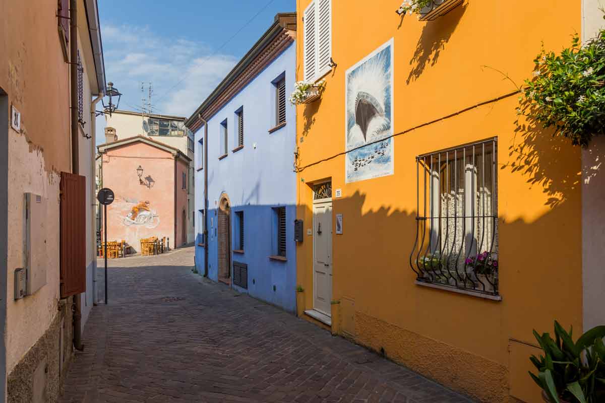 Borgo San Giuliano – è il vecchio borgo dei pescatori di Rimini. Oggi è un quartiere caratteristico con piccole case colorate e facciate ricoperte dai murales con le scene dei film di Federico Fellini. Scopri di più sul Borgo San Giuliano.