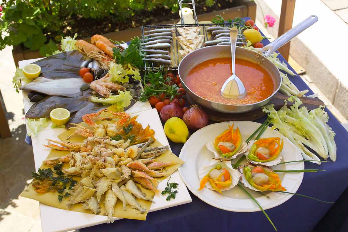 Nell’entroterra si possono assaporare carni, formaggi, funghi, tartufi e le ricette della tradizione contadina; sul mare pesci e molluschi sempre freschi, dalle preparazioni più “povere” fino alle più sofisticate.