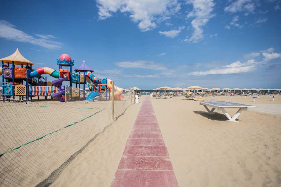 Tutti gli stabilimenti balneari di Rimini sono attrezzati con giochi sulla sabbia, campi da beach tennis, animazione e altre attività ricreative. Ci sono stabilimenti particolarmente attenti ai bambini che organizzano lezioni di nuoto, laboratori creativi dove mettersi alla prova con lezioni di cucina, lavoretti manuali e piccoli spettacoli. Le frazioni più frequentate dalle famiglie sono quelle della zona nord – da Rivabella a Torre Pedrera – dove le spiagge sono più piccole, semplici e tranquille. Molti stabilimenti mettono a disposizione braccialetti e altri sistemi anti smarrimento utili per la sicurezza dei bambini e la tranquillità dei genitori. - Fare il bagno a Rimini