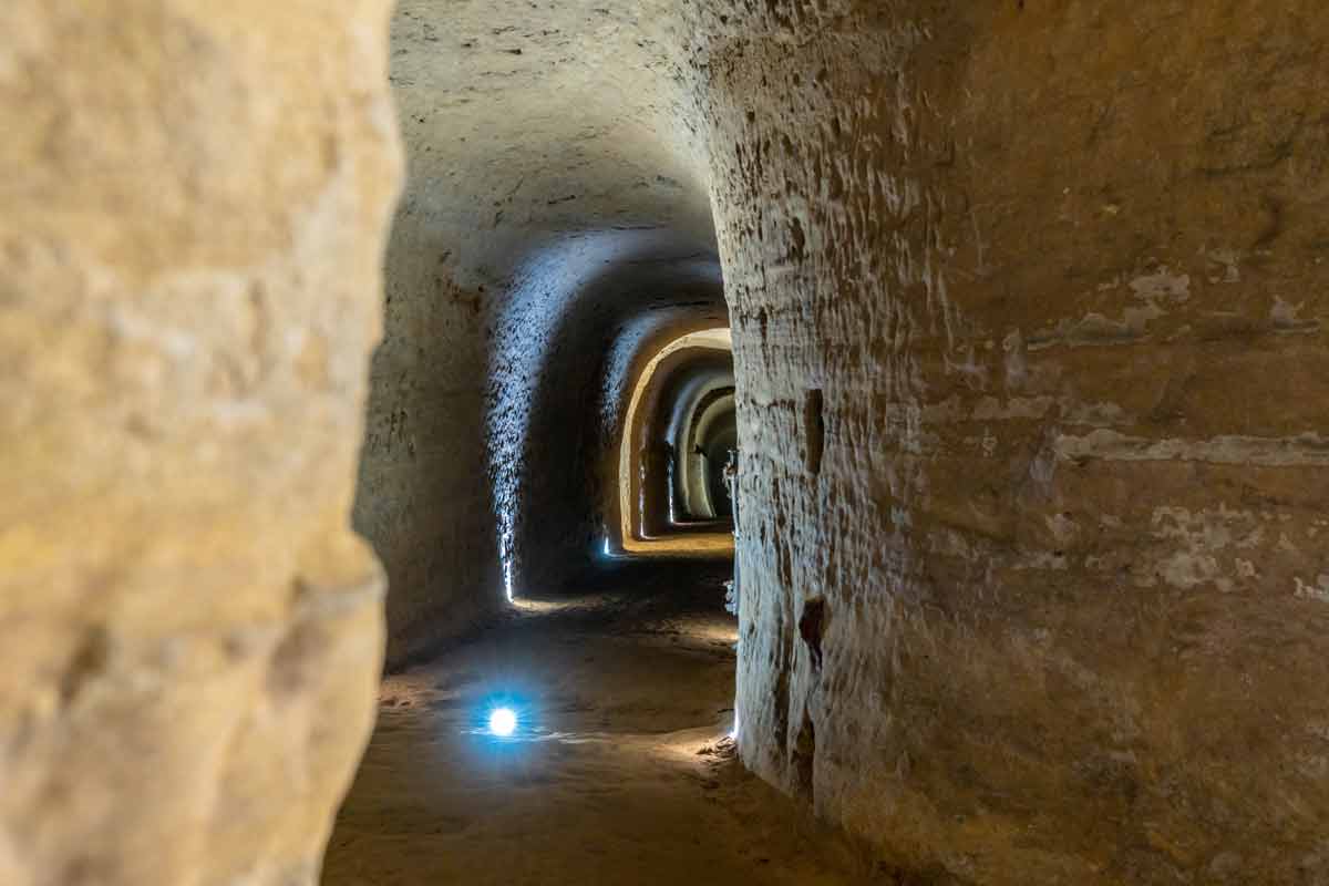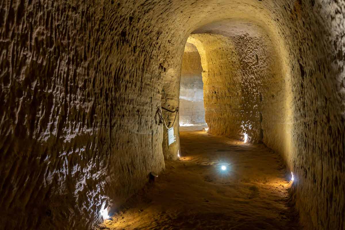 Nel sottosuolo della parte orientale di Santarcangelo sono presenti 160 grotte tufacee, molte delle quali aperte al pubblico. Le grotte sono avvolte dal mistero, perché non si è mai stabilito con precisione quale fosse la loro destinazione di utilizzo. Si trovano su 3 diversi livelli di profondità e sono visitabili con guida (per informazioni tel. 0541.624270). - Perdersi nelle sale della Rocca Malatestiana