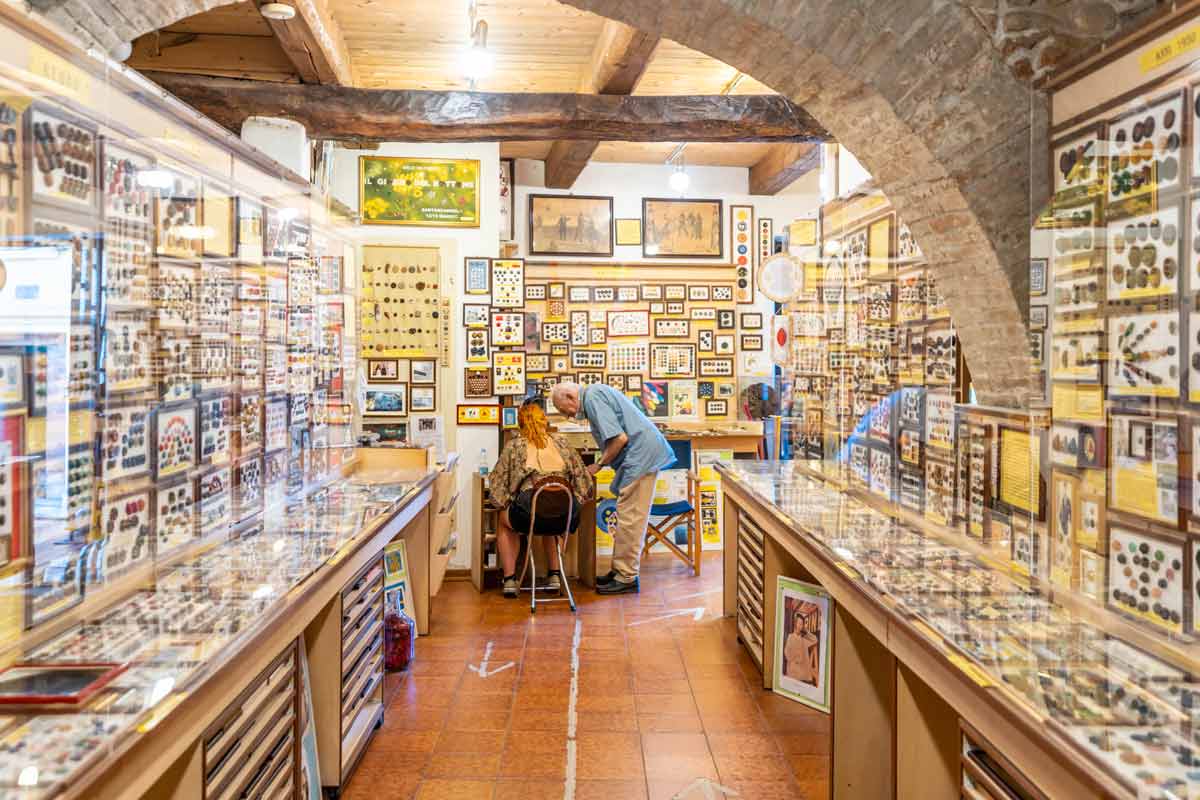 Si tratta di una collezione privata, nata dalla passione di Giorgio Gallavotti e della sua famiglia che possedeva una merceria. Migliaia di esemplari da tutto il mondo con alcuni pezzi di importanza storica, come i bottoni delle divise dei militari della Seconda Guerra Mondiale. (Via della Costa, 11 – Santarcangelo – tel. 0541.624270). - Attraversare il famoso arco dei “becchi”
